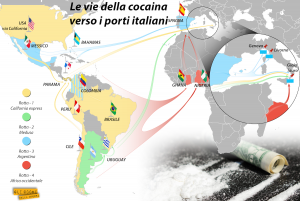 Per la Procura palermitana “Paolo Lumia era uno dei più importanti broker del narcotraffico mondiale”. (in foto n.2 il traffico di cocaina verso l'Italia attraverso una mappa pubblicata lo scorso 28 gennaio sul sito Insideover) Collegato all’arresto di Lumia, potrebbe essere la scoperta ed il sequestro alcuni giorni fa a Mazara del Vallo, nascosta in un terreno, da parte degli agenti del locale Commissariato, di diversi chili di sostanza da taglio e altri chili di una sostanza polverosa; in corso le indagini degli uomini del gabinetto della polizia scientifica.