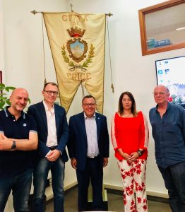Il sindaco di Erice Daniela Toscano ha ricevuto oggi la gradita visita di Giorgio Heller, nuovo presidente del Trapani calcio. All’incontro hanno partecipato i componenti della Giunta ed alcuni rappresentanti del consiglio comunale. Clima cordiale nel corso dell’incontro con il sindaco Toscano che ha ringraziato a nome della comunità ericina il presidente Heller per il salvataggio del Trapani calcio che l’anno prossimo disputerà il campionato di serie B rappresentando l’intera Sicilia.