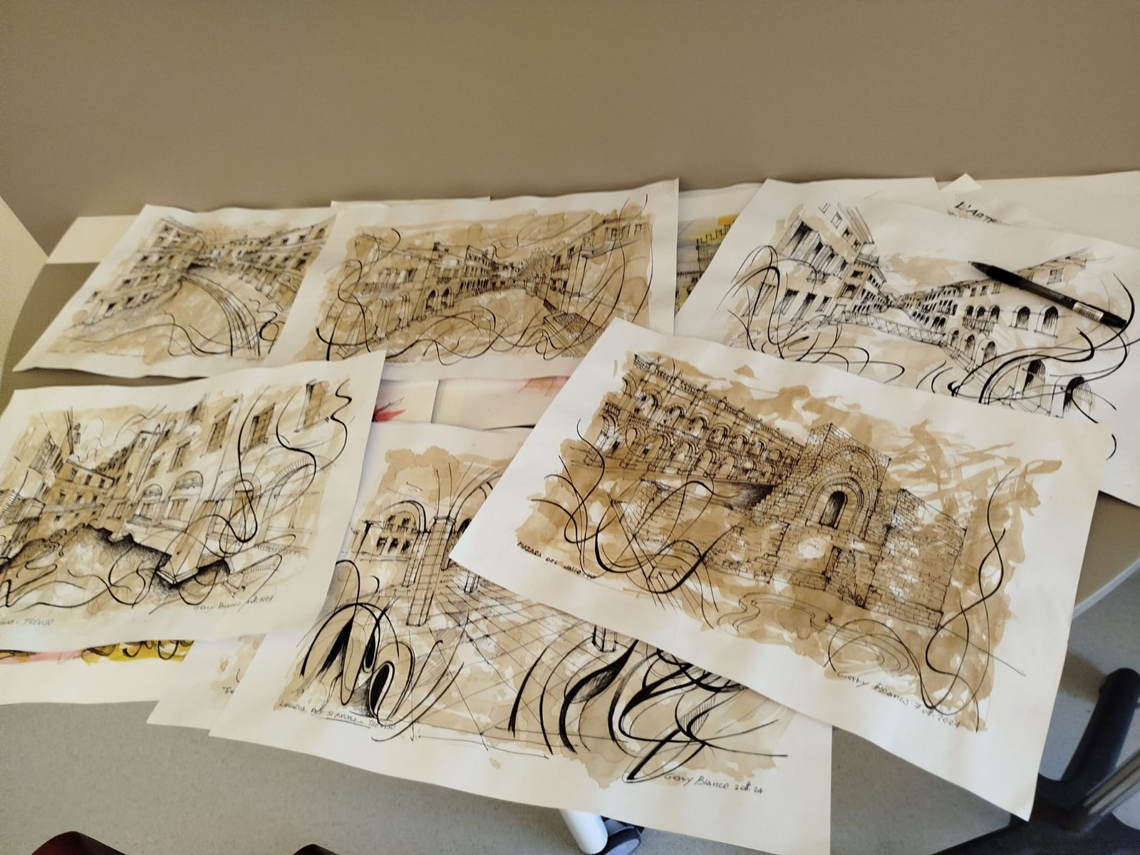 L'artista ha voluto catturare alcuni scorci suggestivi della città di Treviso. Le opere, disegnate su cartoncino, sono state donate al reparto di Urologia dell'ospedale, dove saranno esposte in modo permanente. "Voglio esprimere la mia gratitudine nei confronti di questo grande ospedale, centro di eccellenza italiana, condotto egregiamente dal primario Dott. Mario Mangano, da tutta l’equipe medica e dal personale paramedico che con gentilezza e spirito di grande servizio svolgono il loro lavoro.- Ha affermato l'artista, che continua- Torno in Sicilia con più fiducia e rispetto nelle strutture mediche, meravigliato e sorpreso di una così eccellente struttura pubblica, a servizio della comunità, per guarire ed alleviare la sofferenza dei malati, ringrazio in maniera particolare il dott. Mangano per il lavoro che svolge, e che da speranza alla sanità Italiana”.