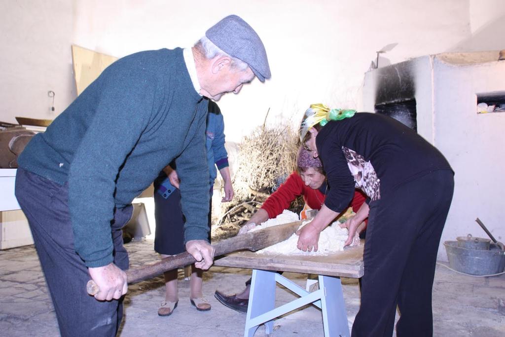 Poi aspettiamo tutti insieme che il pane sia lievitato. Di tanto in tanto Cuncittina batte con la palma della mano sul dorso del pane: nun tona! Bisogna a spettare. E chiacchieriamo. È il tempo dei ricordi, quello dei racconti degli zitagghi di ciascuna delle tre sorelle. Difficile, guardandole, credere che un tempo hanno avuto quindici, sedici, anni e che sono state innamorate. “Tona!”, irrompe Cuncittina. Così si controlla il tetto del forno ormai bianco a tutto tondo, con la ramazza intrisa d’acqua si pulisce il fondo del forno e mentre Gina pone i pani sulla pala di ferro Cuncittina inforna, Lucia passa le forme più lontane e intanto raccoglie le coperte dal letto, le piega, le sistema in un angolo della stanza, poi raccoglie il telo candido che aveva baciato i pani e passa una pezza sul tavolo già pulitissimo.