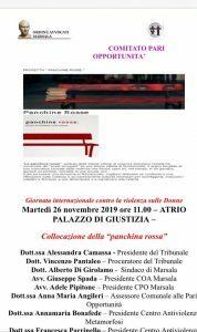 Domani, Martedì 26, altri due incontri: alle ore 11:00, ancora al Tribunale, la collocazione della “panchina rossa” nell'Atrio del Palazzo di Giustizia; mentre nel pomeriggio, alla Biblioteca di c.da Terrenove (ore 16:30), sarà proiettato il film “Nome di Donna” per la regia di Marco Tullio Giordana.