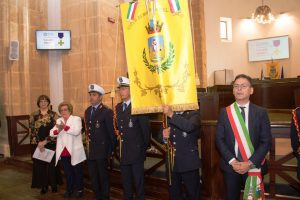 Il Gonfalone della Città di Mazara del Vallo, con la croce al valor militare conferita , è stato portato dai Vigili Urbani in alta uniforme coordinati dal Comandante Salvatore Coppolino e salutato da marce militari e dall’esecuzione del “Silenzio” in memoria dei caduti.