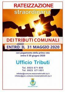 Confermata la scadenza della rateazione straordinaria per il 31 maggio 2020 “In vista della riapertura, a partire da lunedì 18 maggio, di attività produttive e commerciali, che pertanto necessitano di un supporto diretto da parte dei servizi comunali, il personale del servizio Tributi tornerà a lavorare presso gli uffici comunali nell’ex complesso Sant’Agnese ed a ricevere il pubblico, a partire da martedì 19 maggio, previo appuntamento telefonico, nel rispetto di tutte le prescrizioni previste dai vigenti decreti anti-covid”.