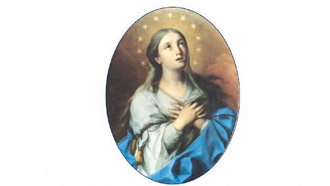Essa è rappresentata con le mani incrociate sul petto e le labbra socchiuse come se pregasse, i suoi occhi sono rivolti verso l’alto in stato estatico che è fatto risaltare dalla luminescenza dell’aura divina, evidenziata da dodici piccole stelle che ne circondano il capo, i cui capelli sciolti scendono sulle spalle, una veste bianca avvolta in un drappeggio ceruleo ne copre il corpo, facendo sì che l’insieme del dipinto trasmetta allo spettatore un senso di quiete, di pace interiore, di devozione, insomma di religiosità.