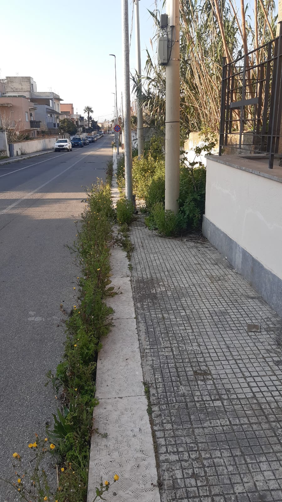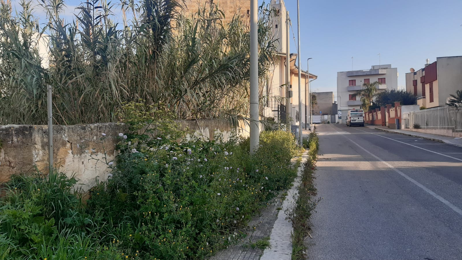 Oltre alla fitta coltre di piante selvatiche che restringe il passaggio, si nota anche la presenza di alte canne che sporgono dai muretti di cinta laterali, contribuendo a dare alla via un aspetto di totale abbandono. È urgente che le autorità competenti provvedano al ripristino delle condizioni minime di agibilità e pulizia, garantendo il diritto dei residenti di fruire in sicurezza degli spazi pubblici e restituendo dignità a una strada che riveste un ruolo sociale così importante per la comunità del quartiere.