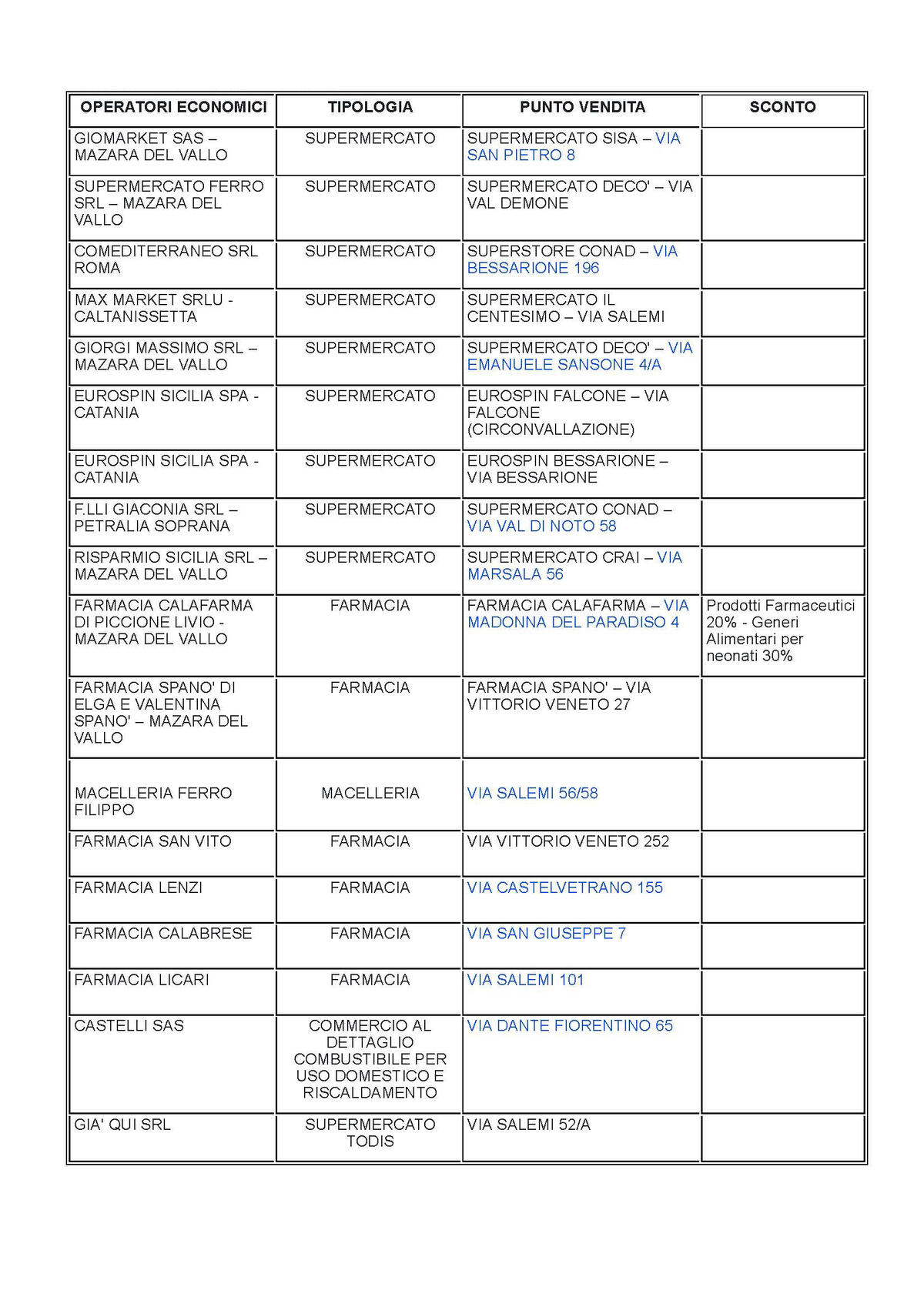 Questo l'elenco degli esercizi commerciali attualmente convenzionati che si sono registrati nella piattaforma e nei quali potranno essere spesi i buoni spesa.
