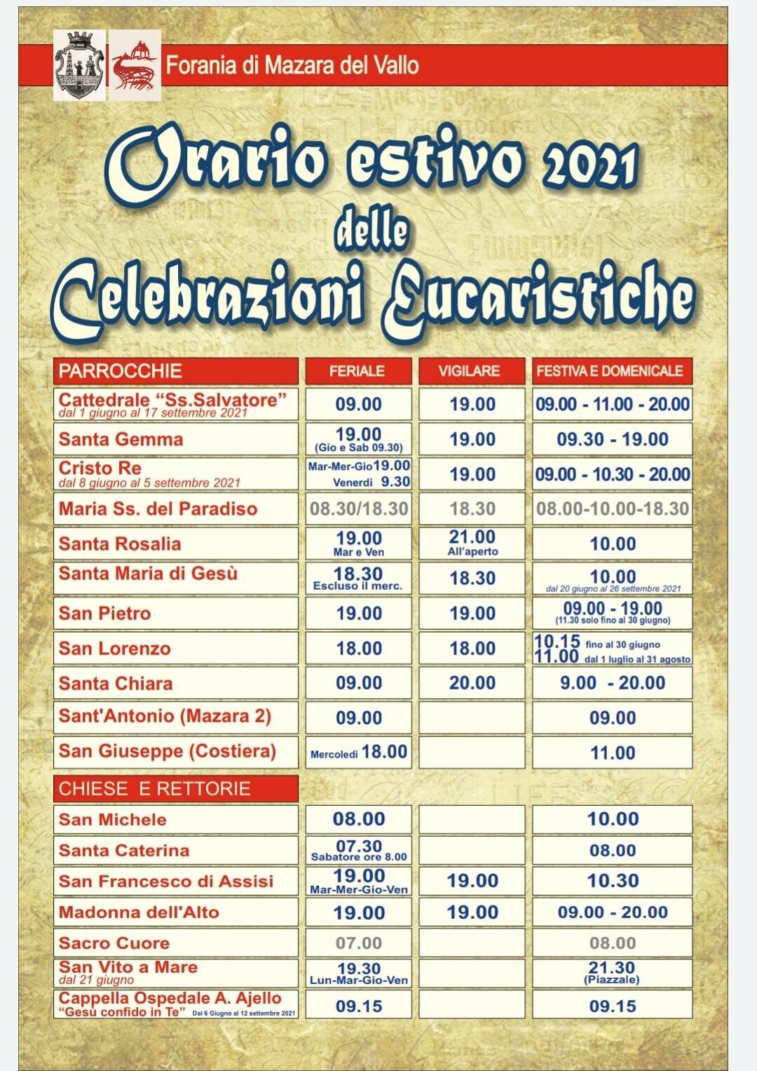 Arriva l'estate ma come si dice in questi ambienti, "Gesù non va in vacanza", ma la Forania di Mazara come ogni anno durante il periodo estivo cambia gli orari delle messe così da poter dare l'opportunità a tutti di partecipare alle celebrazioni eucaristiche in città sia agli stessi parrocchiani che ai turisti.