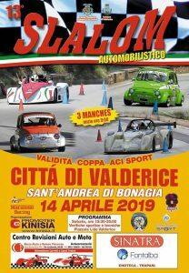 Domenica 14 aprile 2019. Sant'Andrea - Valderice Weekend all’ insegna dell’automobilismo con la specialità Slalom. Il 13° Slalom Automobilistico Città di Valderice – Sant’Andrea di Bonagia si disputerà domenica 14 aprile. Tutte le scuderie isolane saranno presenti con i propri piloti. Oltre 100 i piloti iscritti. La gara, valida come prima prova per la coppa Aci Sport 5ª zona, si svolgerà lungo un percorso di 2750 metri da Sant’ Andrea di Bonagia a Valderice su cui verranno collocate 9 postazioni di rallentamento a 4 birilli.