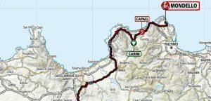 02 aprile SELINUNTE - MONDELLO (141km) - Tappa caratterizzata da una serie di ondulazioni “facili” nella prima parte fino a raggiungere gli ultimi 30 km dove si affronta il breve ma intenso GPM di Carini e le successive parti di avvicinamento a Palermo.