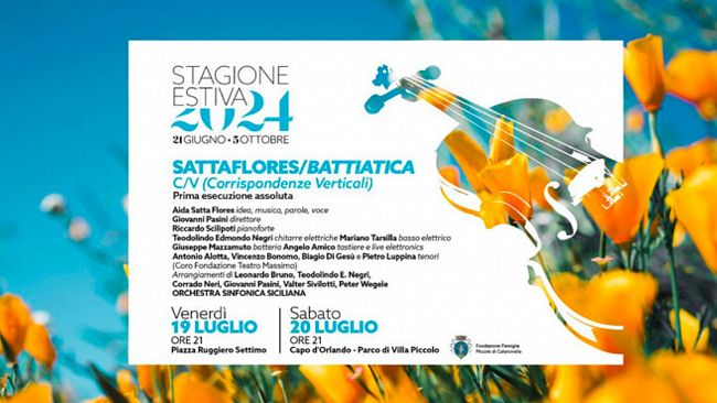 Il concerto fa parte del più ampio disegno artistico di Aida Satta Flores, “Fai La Tua pARTE, progetto articolato in diverse declinazioni artistiche (libro,concerti, album, visioni filmiche) che ama definire processo artistico, “teso a sottolineare, con parola, musica e visioni, l’importanza della valorizzazione e della riscoperta delle proprie semenze e semi”. Biglietti Palermo: € 10 euro/€ 5 (riduzioni per studenti e disabili con necessità di accompagnatore, abbonati stagione 23/24) presso la biglietteria del Politeama Garibaldi e online su https://www.vivaticket.com/it/ticket/sattaflores-battiatica/238695.Per le prenotazioni dei biglietti di Capo d'Orlando (Parco di Villa Piccolo) euro 5 (posto unico) bisogna contattare questo numero: 3806488015.