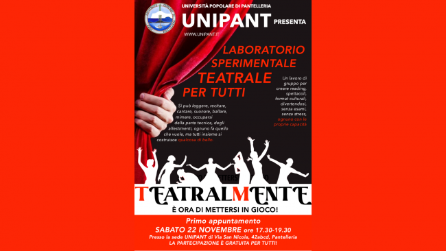 L'Università Popolare di Pantelleria (UNIPANT) presenta alla comunità pantesca una nuova e importante iniziativa sociale: il Laboratorio Sperimentale Teatrale per Tutti, intitolato "TeatralMente".